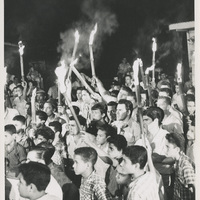 El actor Barulio Castillo entre la multitud de jóvenes y hombres con jachos encendidos durante la filmación.
