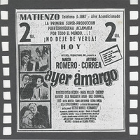 Tarjeta de promoción con datos de los actores de la película Ayer amargo.