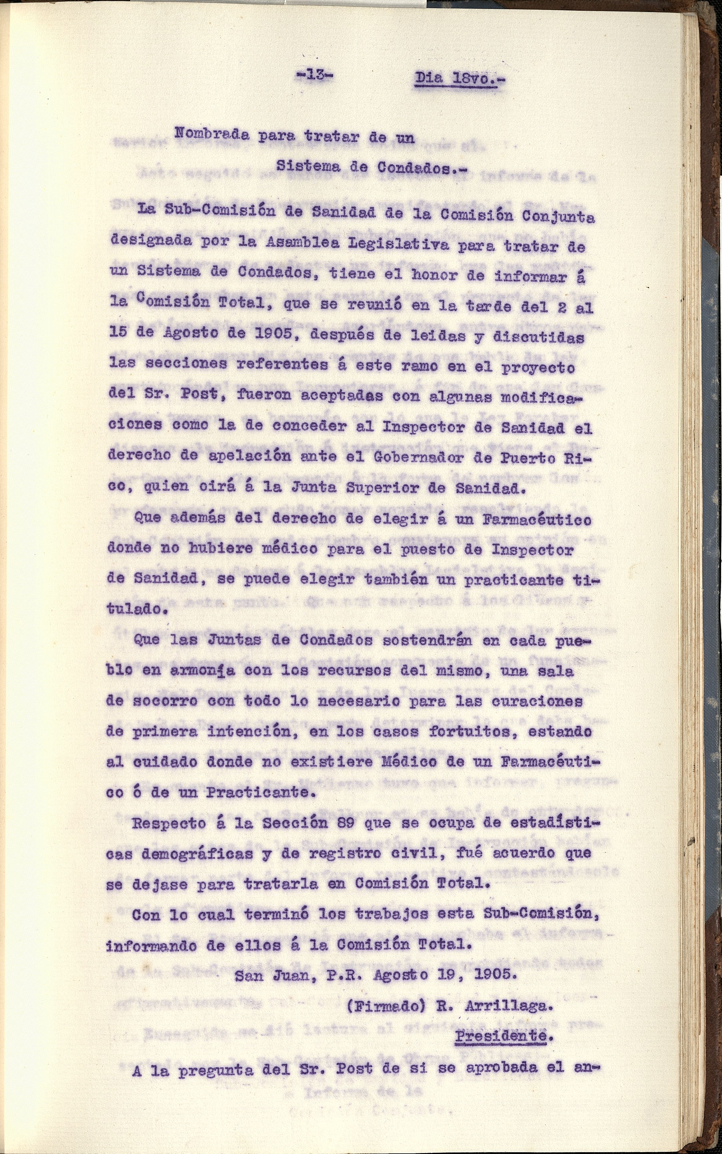 Part of Lectura al informe de la Subcomisión de Hacienda por su Presidente, Juan F. Vivas