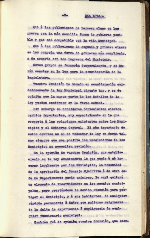 - Que a las poblaciones de tercera clase se les provea con la forma de gobierno más sencilla posible y sea compatible con la vida Municipal.