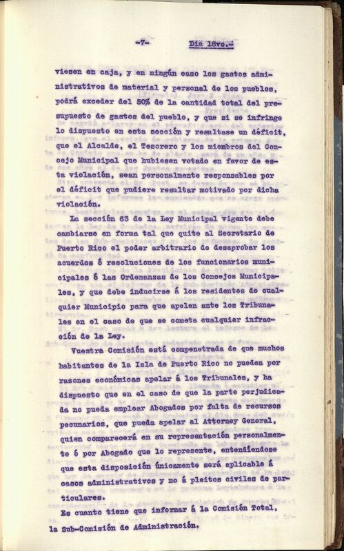 La Comisión fue citada por Regis H. Post, presidente, para oír los informes de las Subcomisiones. Serían leídas por el orden prestablecido: Administración, Hacienda, Sanidad y Beneficencia, Instrucción, Obras Públicas y de lo Judicial, artículo por artículo, procedieron con el informe de la Subcomisión de Administración.