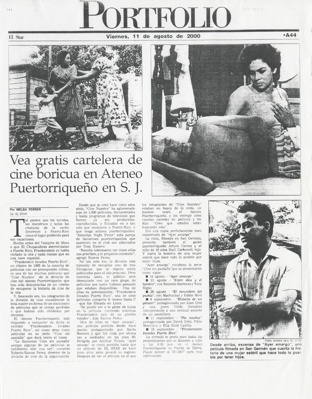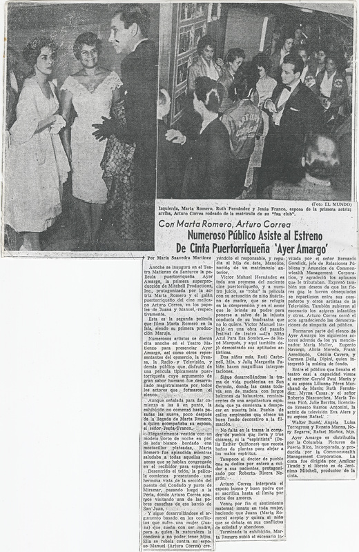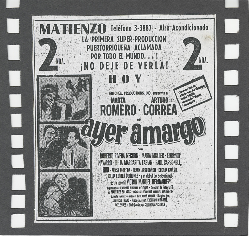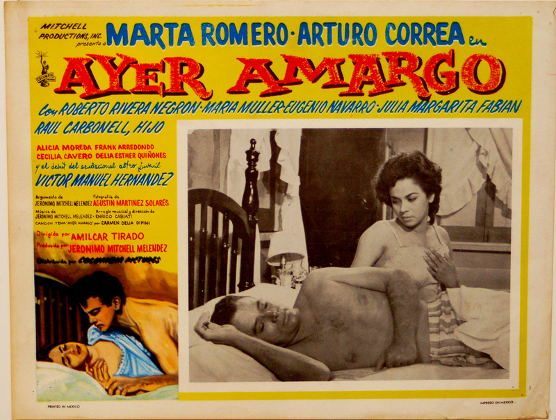 Ayer amargo | 1960. Primer largometraje de la Cooperativa de Artes Cinematográficas. Trata sobre un joven matrimonio que no ha podido tener hijos y la maternidad se convierte en obsesión para ella, papel protagonizado por la actriz Marta Romero. El joven esposo, el actor Arturo Correa, tuvo un hijo de una aventura con una prostituta. A la muerte de esta la trama se va complicando hasta el final. Fue producida por Jerónimo Mitchell en 1959 y exhibida en 1960. Es la entrada de Amílcar al mundo del cine comercial puertorriqueño, el cual exploró planos y composiciones con los que ya venía experimentando desde su cine documental.
