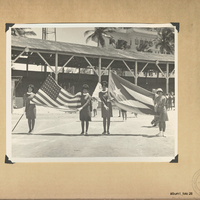 [Desfile de día de juegos jóvenes con banderas de Puerto Rico y Estados Unidos]