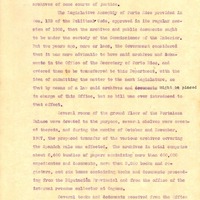 La Asamblea Legislativa de Puerto Rico en su Sección 133 del Código Político, aprobó en la sesión regular de 1902 que los archivos y documentos públicos deben permanecer bajo la custodia del Comisionado de lo Interior. Pero, hace aproximadamente dos años el gobierno consideró que era más aconsejable que dichos archivos y documentos estuvieran en la Oficina del Secretario de Puerto Rico y ordenó su transferencia a ese departamento con la idea de someter el asunto a la próxima Legislatura para que por medio de la Ley dichos archivos y documentos puedan ubicarse a cargo de esta oficina, pero nunca fue presentado un proyecto de ley a tales efectos.