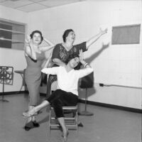 Actrices Angelina Morfi, Marta Romero y Alicia Moreda ensayando la obra Farsa del Amor